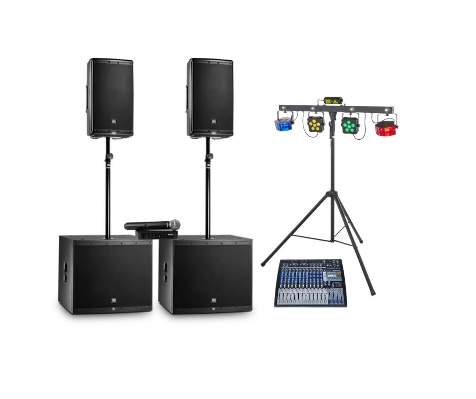 Peokomplekt 4 pakub kõike, mida vajad suurejoonelise ja meeldejääva ürituse korraldamiseks. See komplekt ühendab endas võimsa ja kvaliteetse helilahenduse koos efektiivse valgustustehnikaga, luues õige atmosfääri nii muusika, esitluste kui ka meelelahutuse jaoks. Ideaalne valik kontsertidele, firmapidudele, pulmadele ja muudele sündmustele, kus osalejate arv ulatub kuni 300 inimeseni.