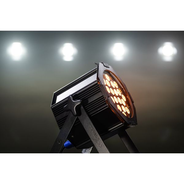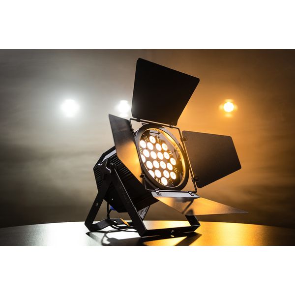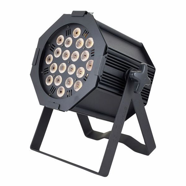 Stairville Octagon Theater 20×6W on professionaalne LED‑teatriparaprojektor, mis on mõeldud lavadele, festivalidele, bändi‑ja show‑keskkondadesse. Seade kasutab 20 × 6 W High Power TCL 3‑in‑1 LED‑e (cool white/warm white/amber), võimaldades reguleerida värvitemperatuuri vahemikus ~2800 K kuni ~6400 K. Beam nurk on ligikaudu 36°, mis teeb seadme sobivaks nii suunatud valgustuseks kui ka aktsentvalgustuseks. Juhtimine toimub DMX‑512 kaudu (4, 6 või 9 kanalit), lisaks on reaalsed võimalused automaat‑ ja heliaktiveeritud režiimiks. Korpus on kompaktne (~230 × 250 × 200 mm), kaal ~6,9 kg, toitevajadus kuni ~120 W 110‑230‑V vahemikus. Seade sisaldab barndoore, mis võimaldavad valgusvihu täpsemat määramist.